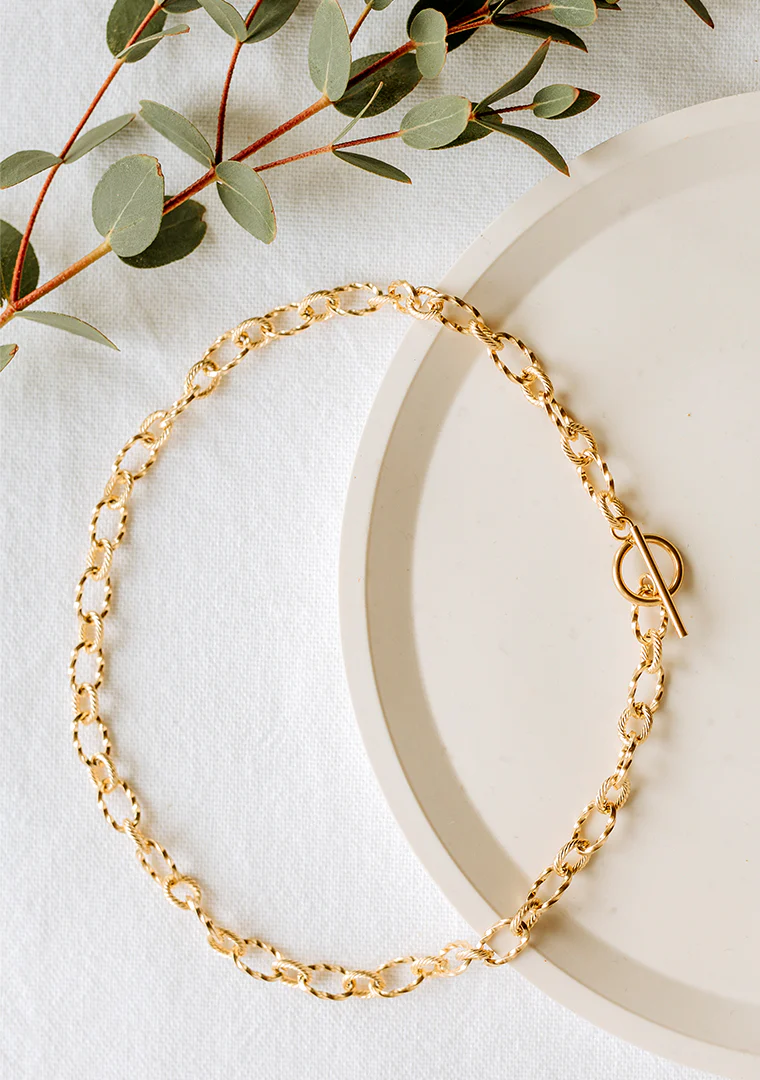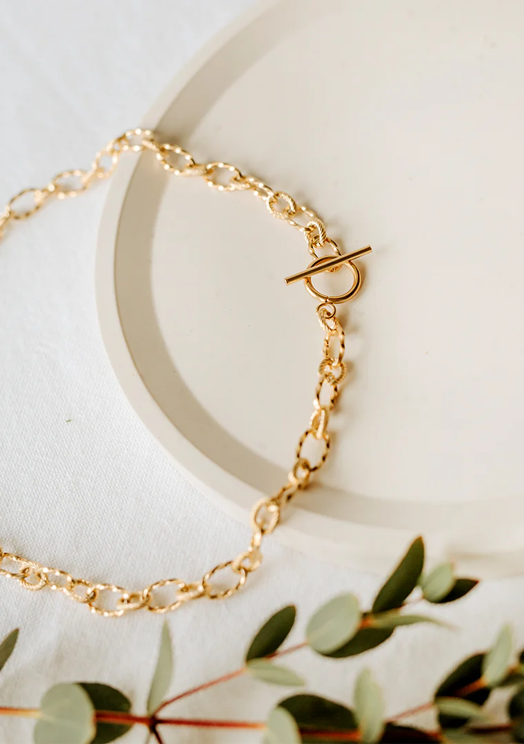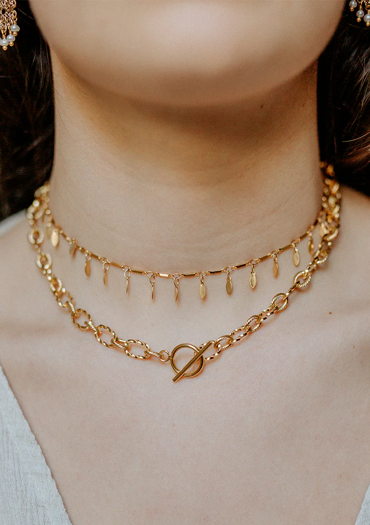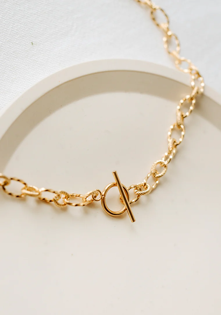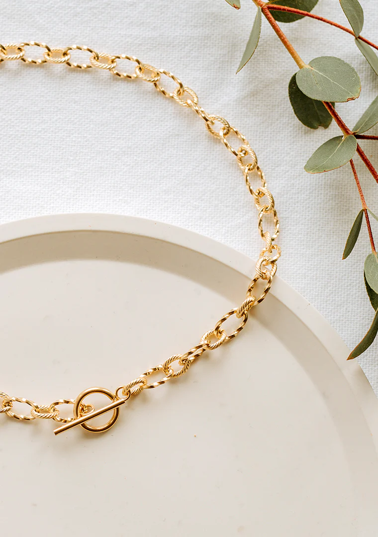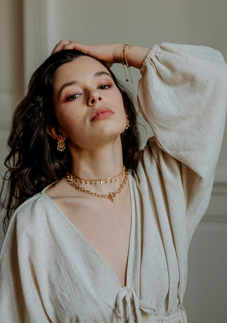 Le collier Max est fabriqué à la main dans mon atelier, Il est composé d’une chaine aux maillons asymétriques et d’un fermoir bâton,