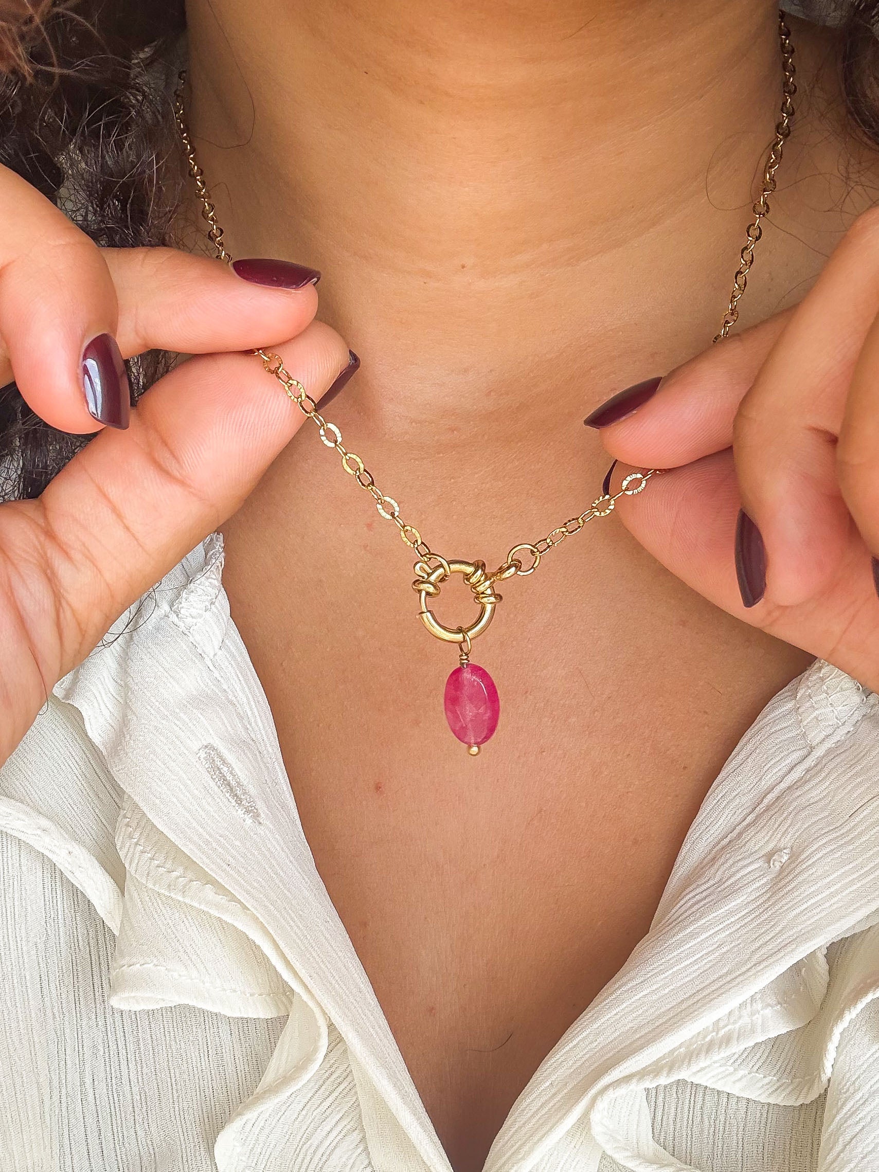 Attention, les bijoux sont fabriqués avec des pierres semi-précieuses dont la couleur et la taille peuvent varier d’un bijou à l’autre.