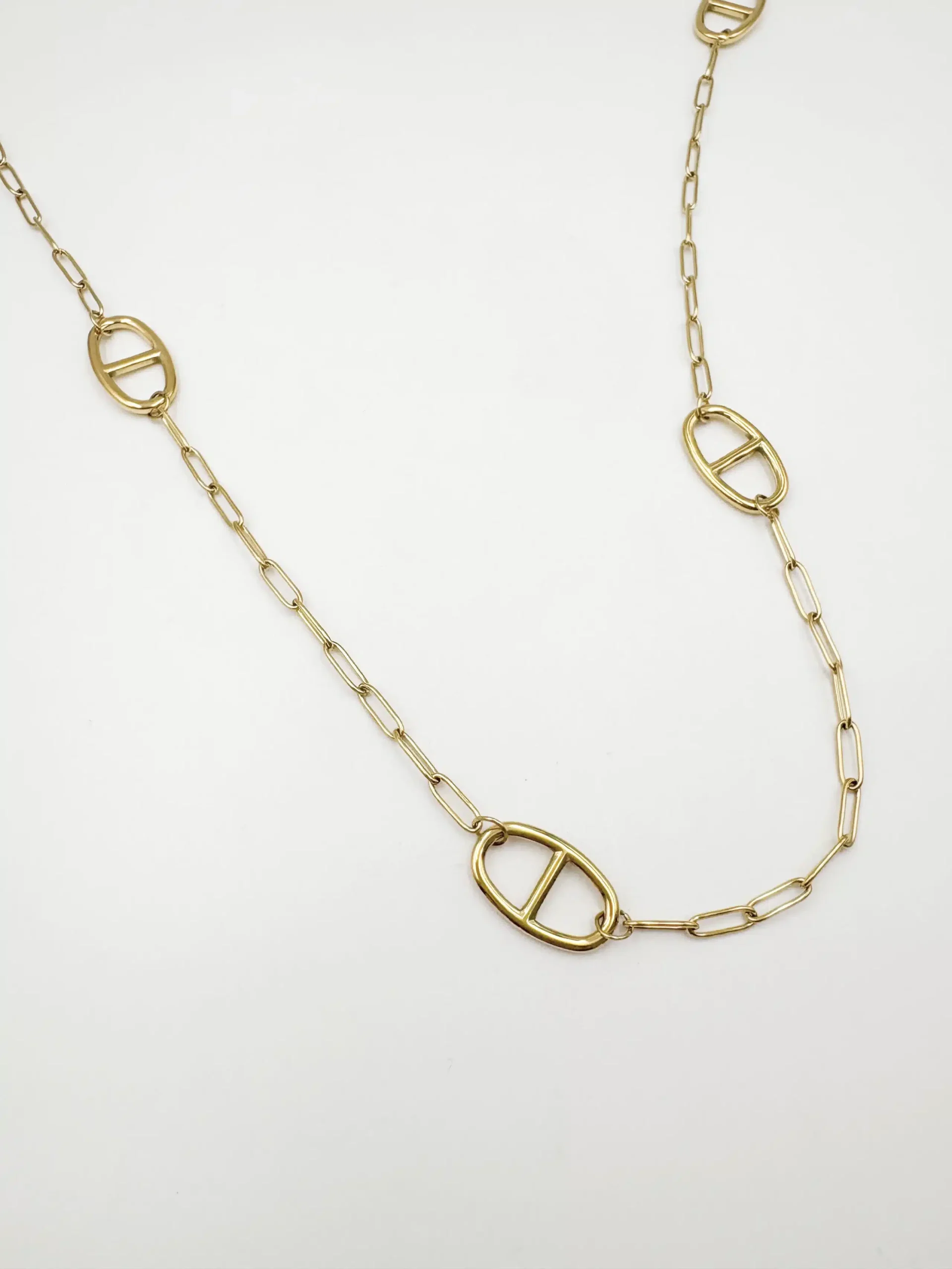 Collier sautoir à maillons XXL en acier inoxydable or avec pendentifs grain de café, maille marine– Bijou en acier inoxydable
