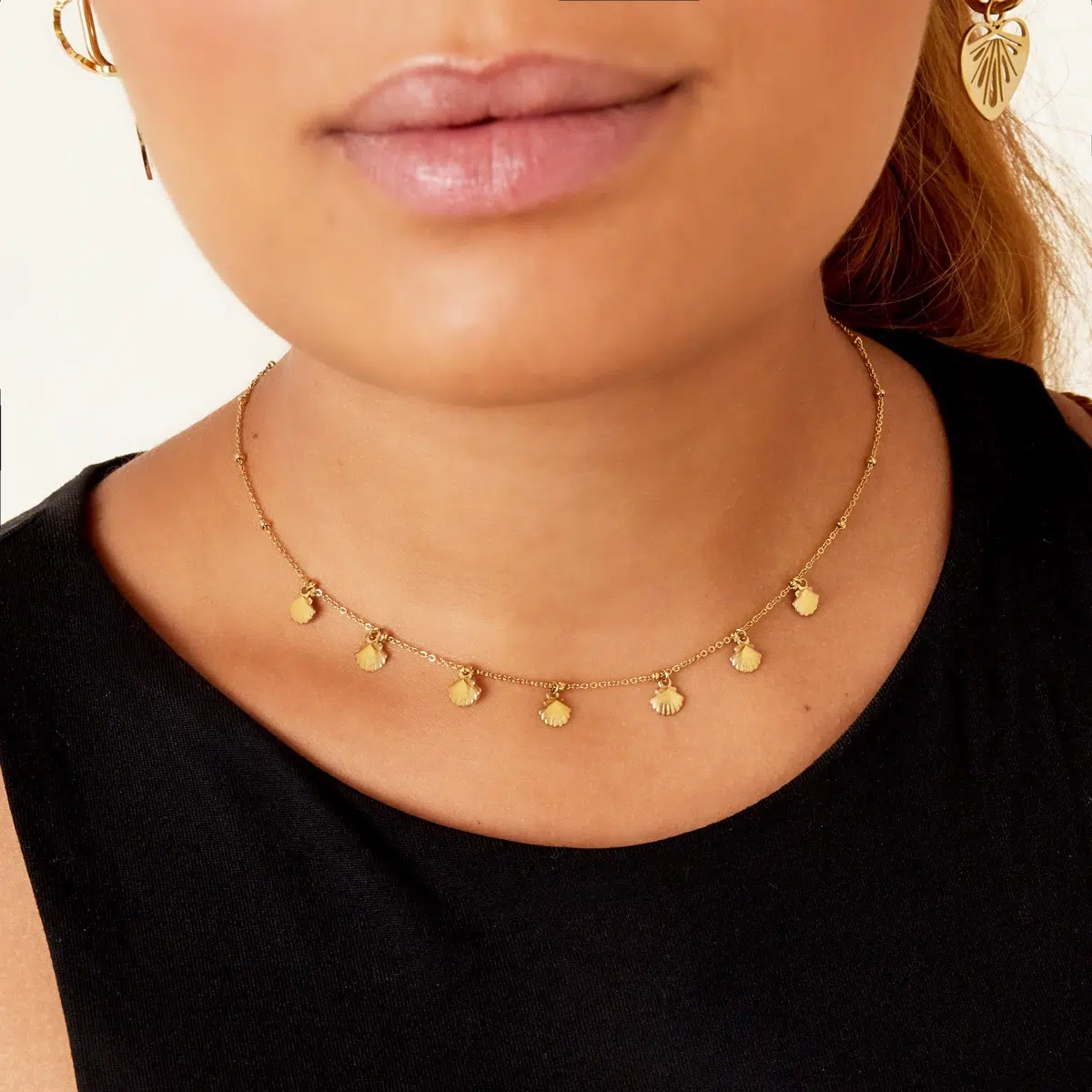 - Joli collier composé d’une très fine chaine et de petits pendentifs en forme de coquillage