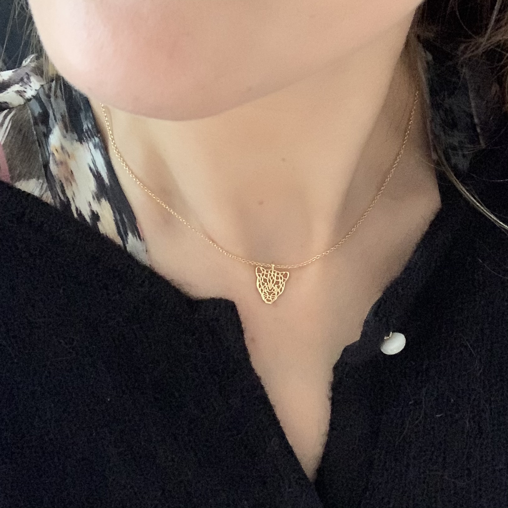 Joli collier à fine chaine et son pendentif tigre