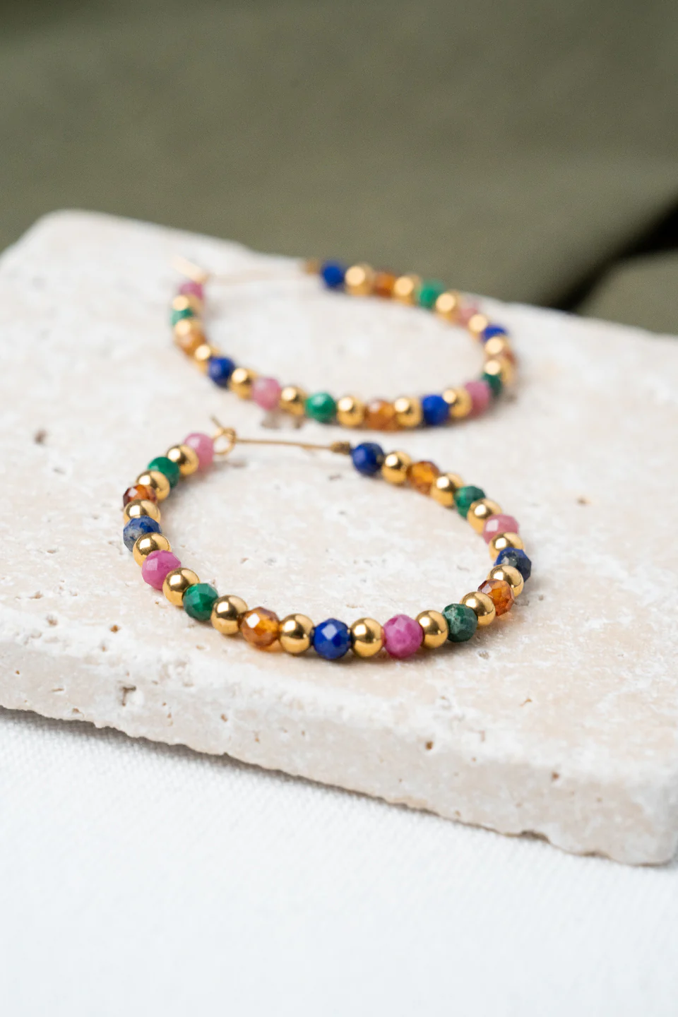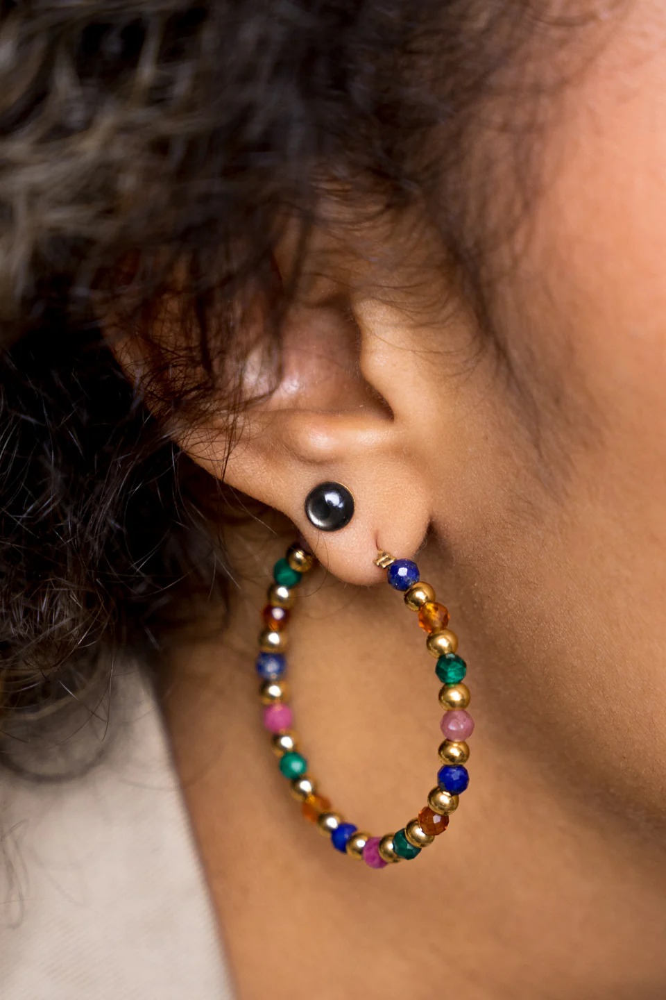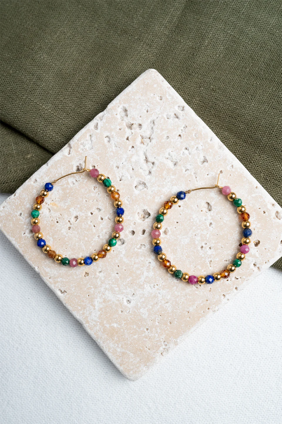 Les créoles Masha sont fabriquées à la main dans mon atelier, Elles sont composées de pierres semi-précieuses et de perles dorées,
