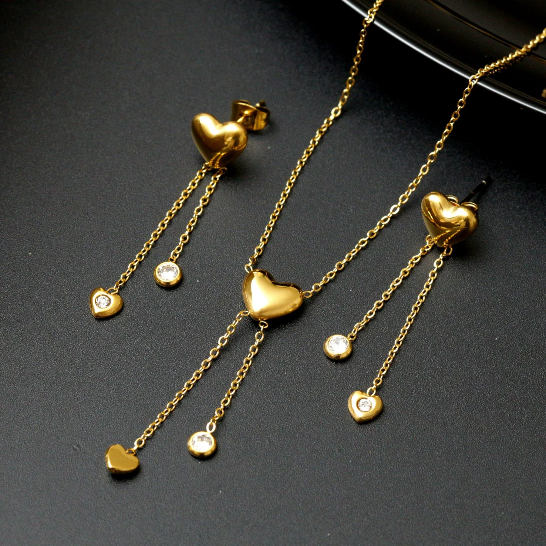 Ensemble 2 pièces en acier inoxydable cœur pierres pendantes