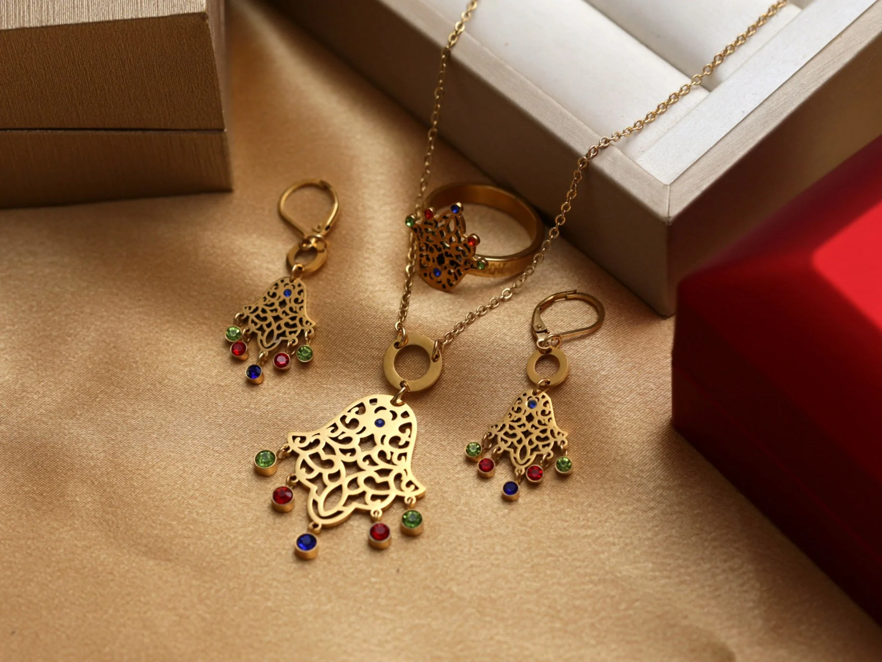 Ensemble 3 pièces acier inoxydable khamsa couleurs