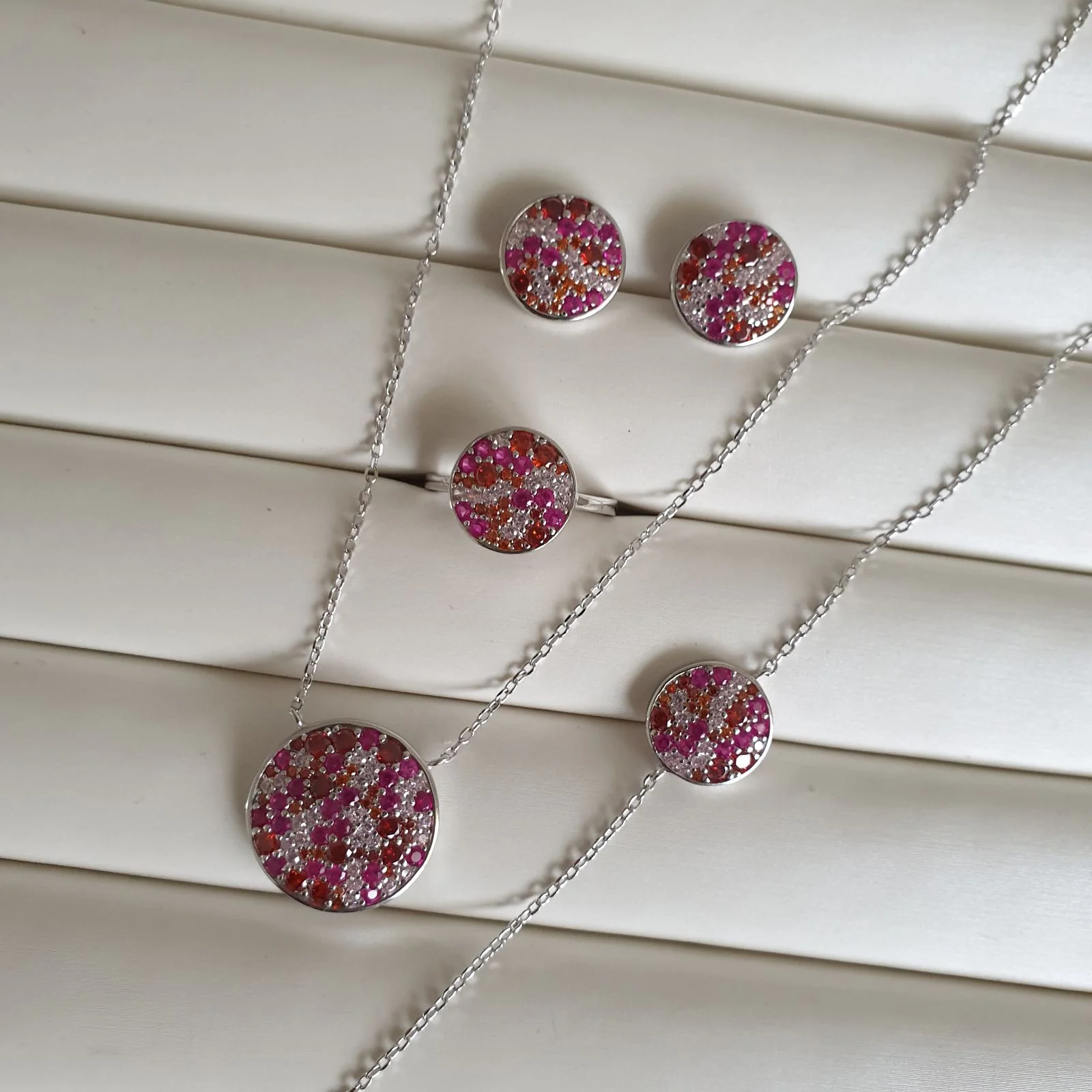 Ensemble 4 pièces argent Rhodié garanti pierres rouges remplies