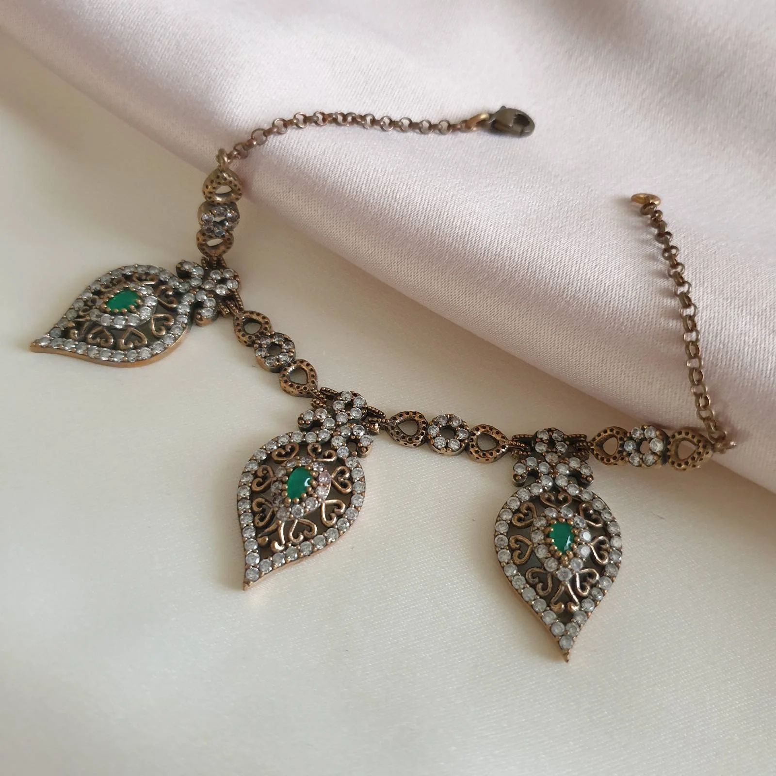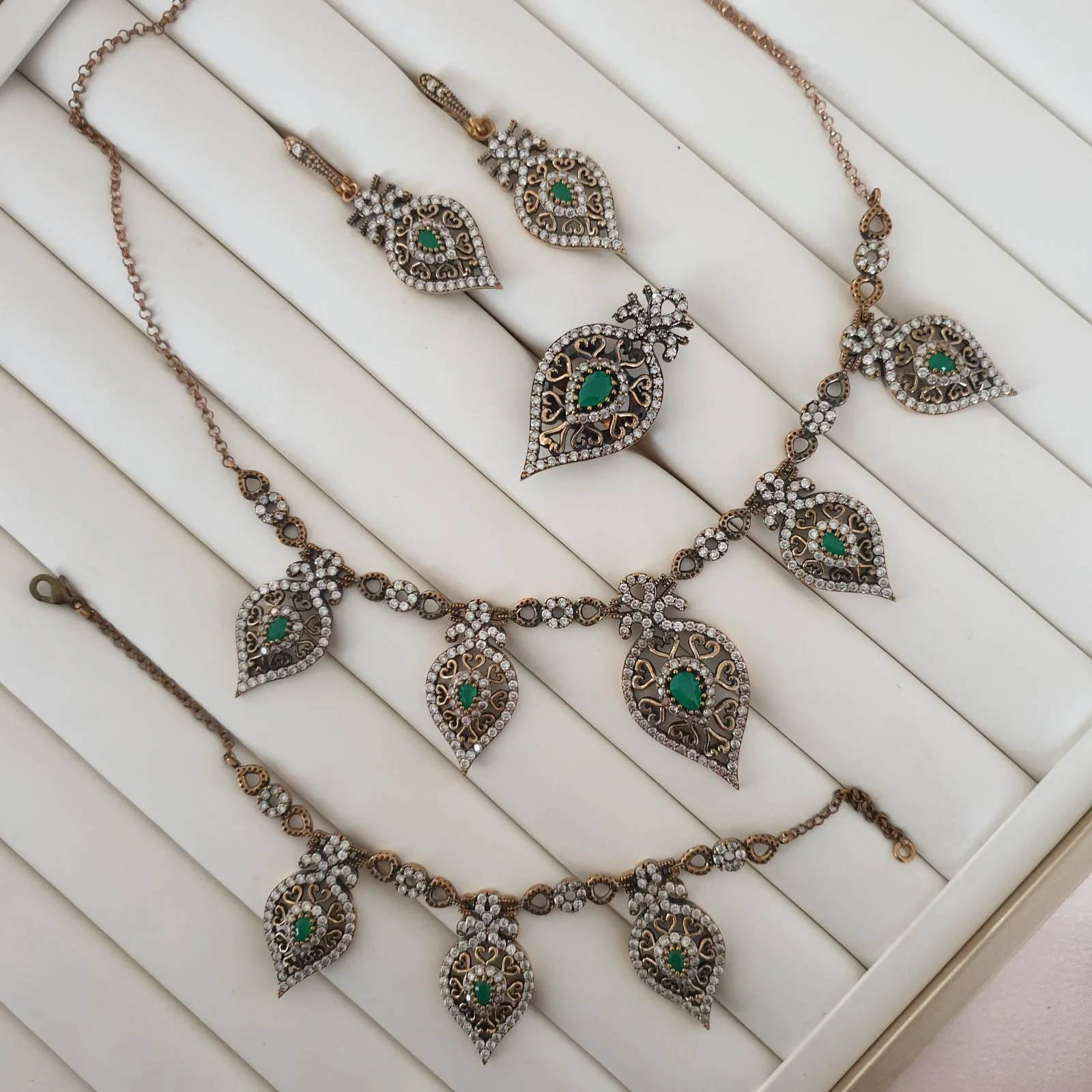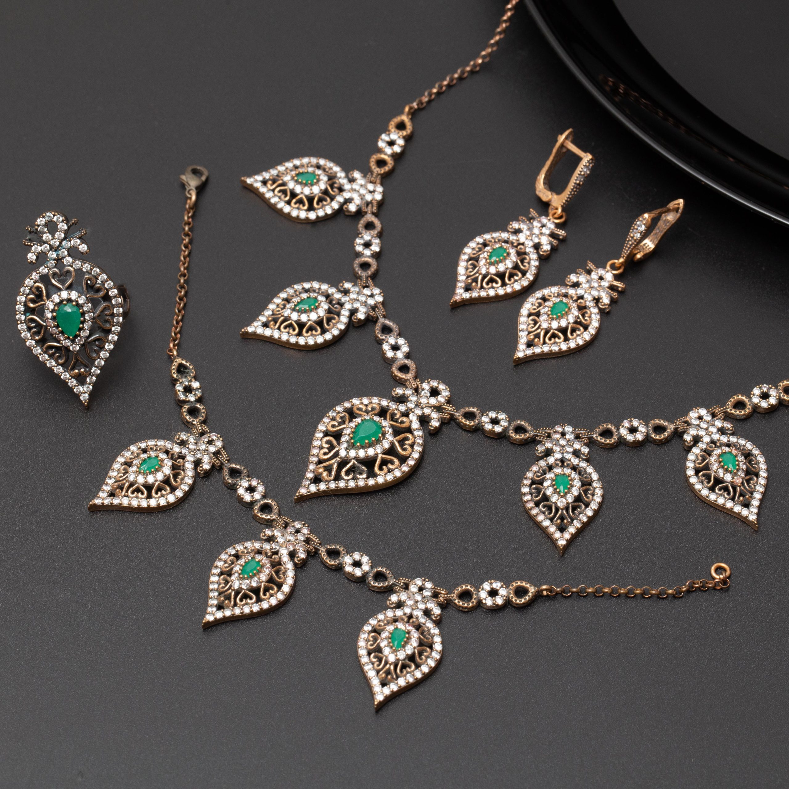 Ensemble 4 pièces bronze bijoux traditionnel pierre verte amande