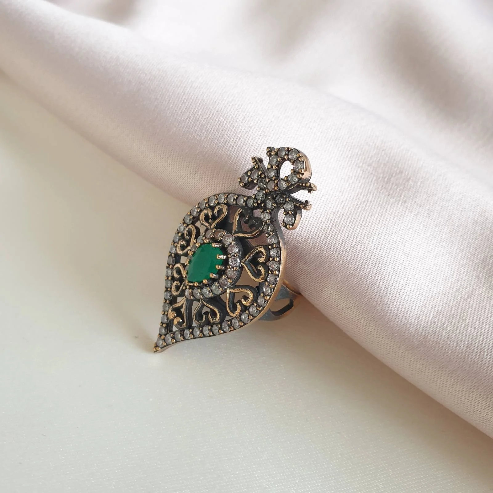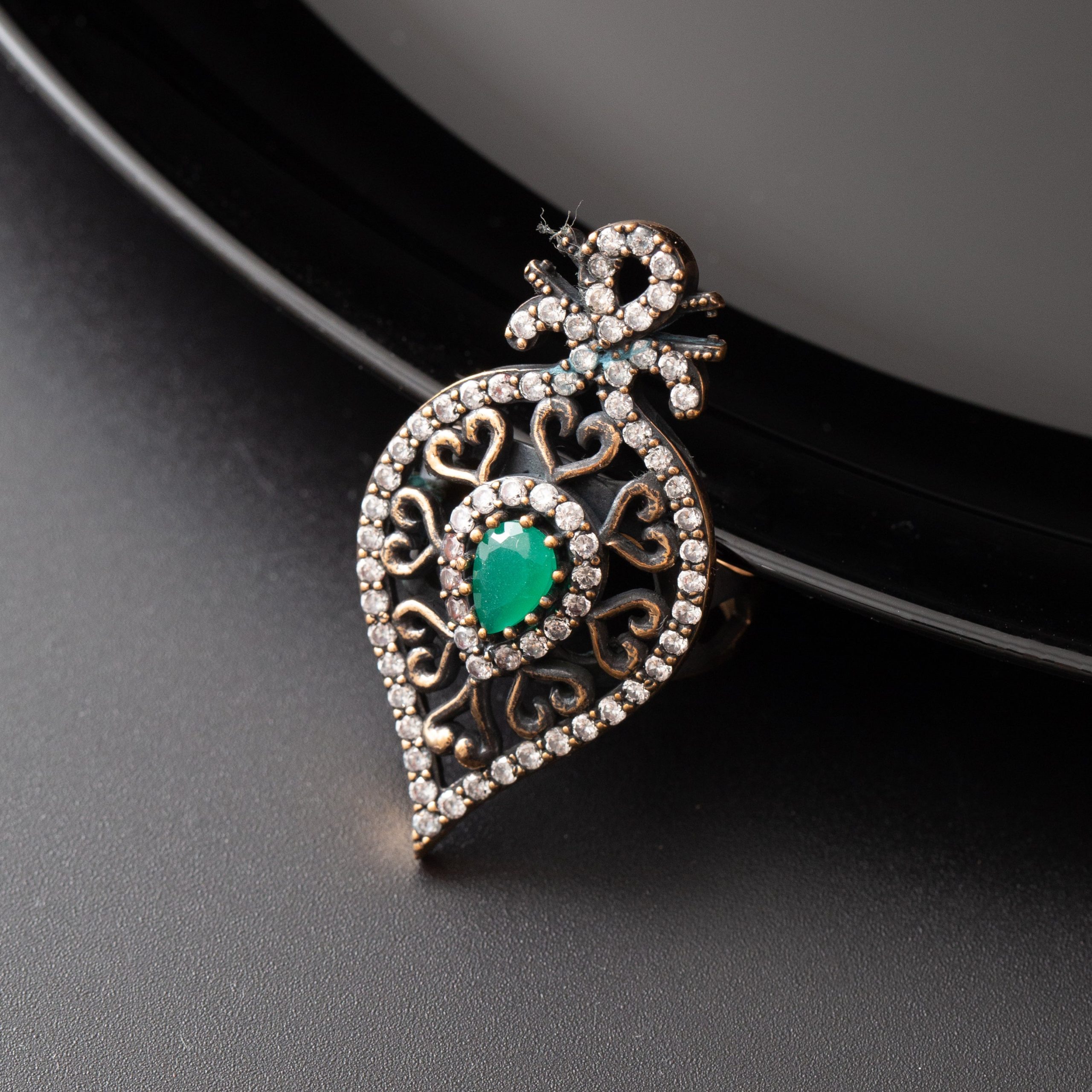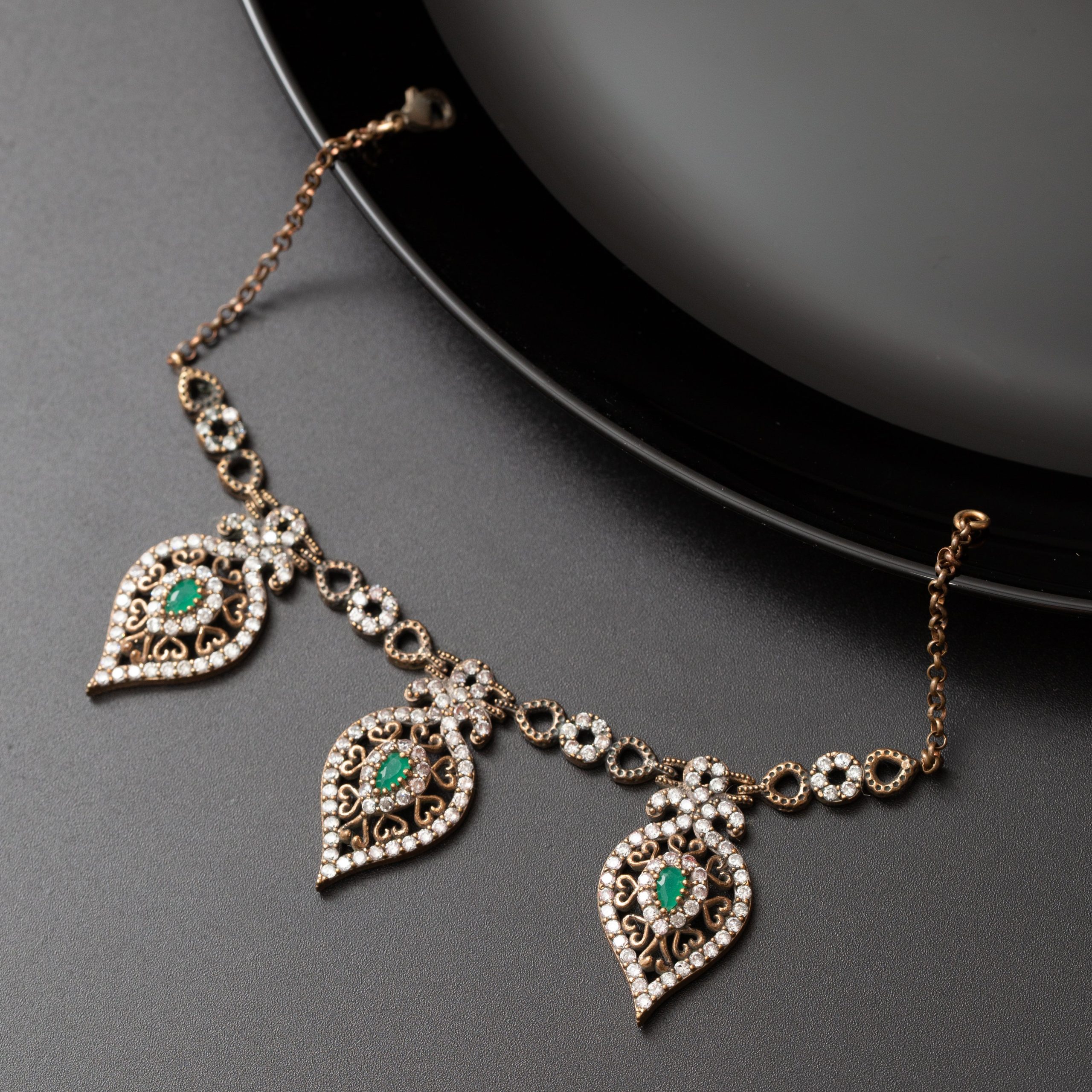 Ensemble 4 pièces bronze bijoux traditionnel pierre verte amande