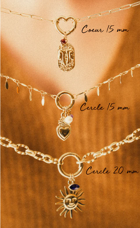 Changez vos pendentifs en un clin d’oeil grâce à nos fermoirs interchangeables conçus pour notre gamme de bijoux personnalisables (Bracelet Tessa et Collier Tess).Leur système à ouverture simple et sécurisée vous permet de glisser vos charms, médailles et pendentifs sans outil, pour créer un bijou unique qui vous ressemble vraiment.Différentes formes sont disponibles :