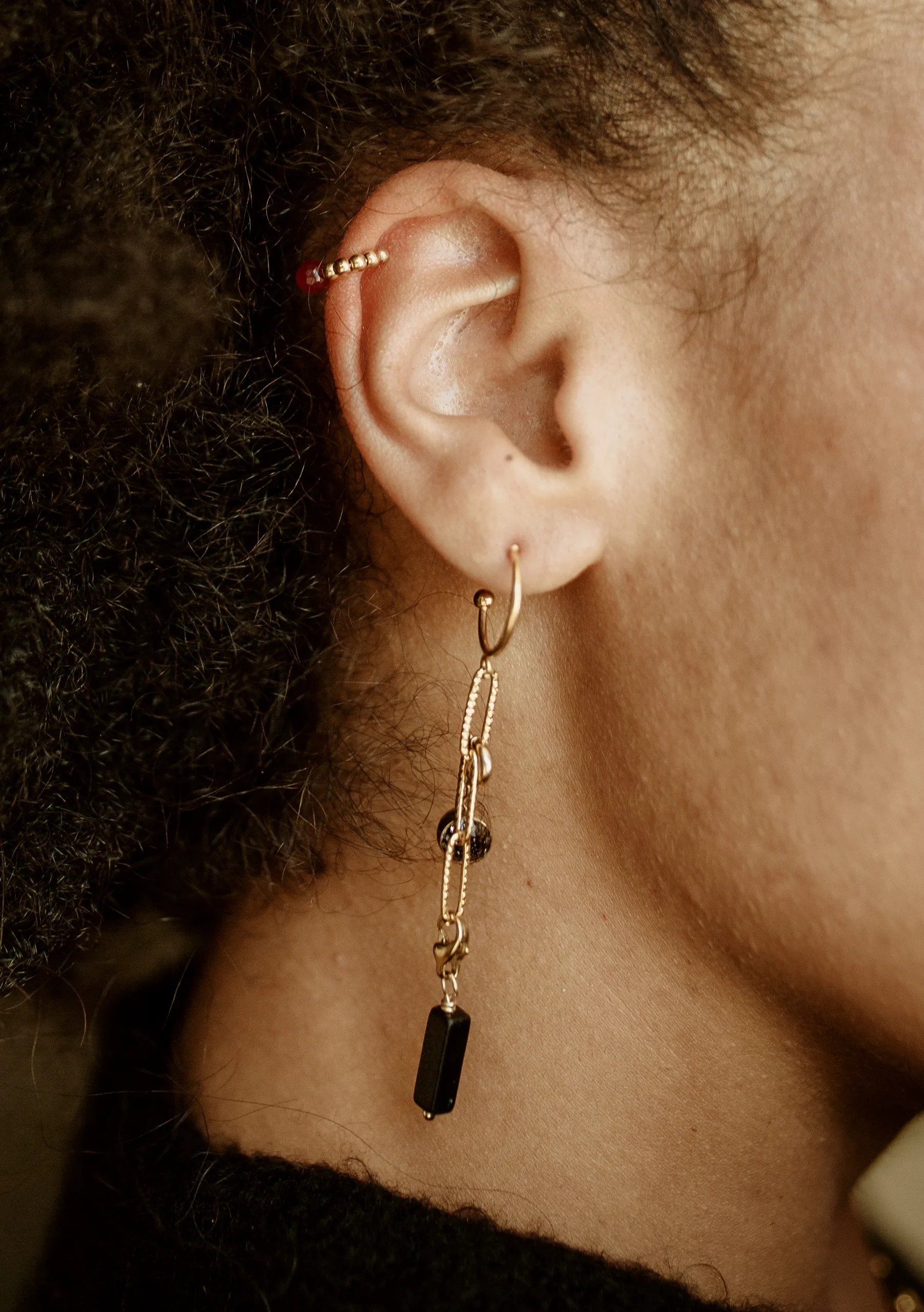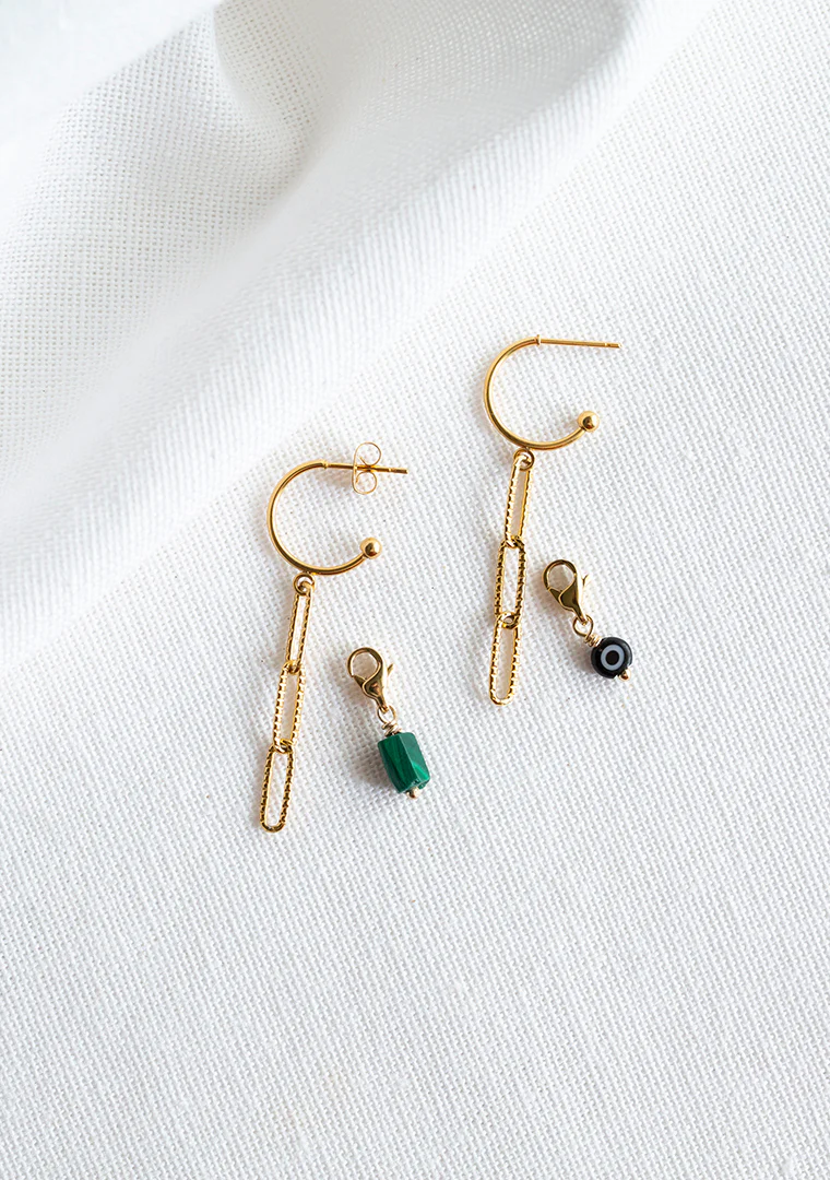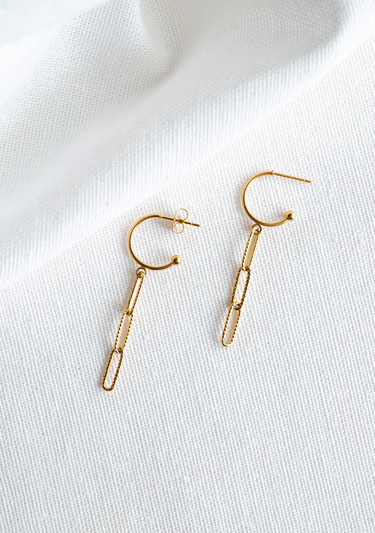 Les créoles Aria sont fabriquées à la main dans mon atelier, Elles sont habillées d’une chaine aux mailles rectangulaires,