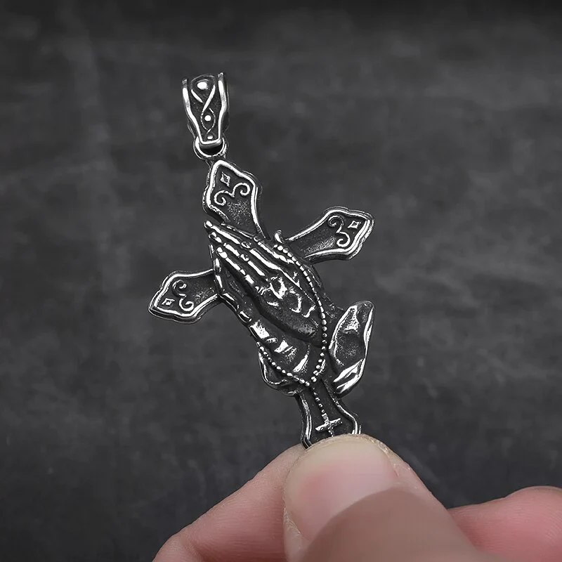 Le pendentif représentant une main en prière incarne la dévotion et la spiritualité d’une manière touchante et symbolique.