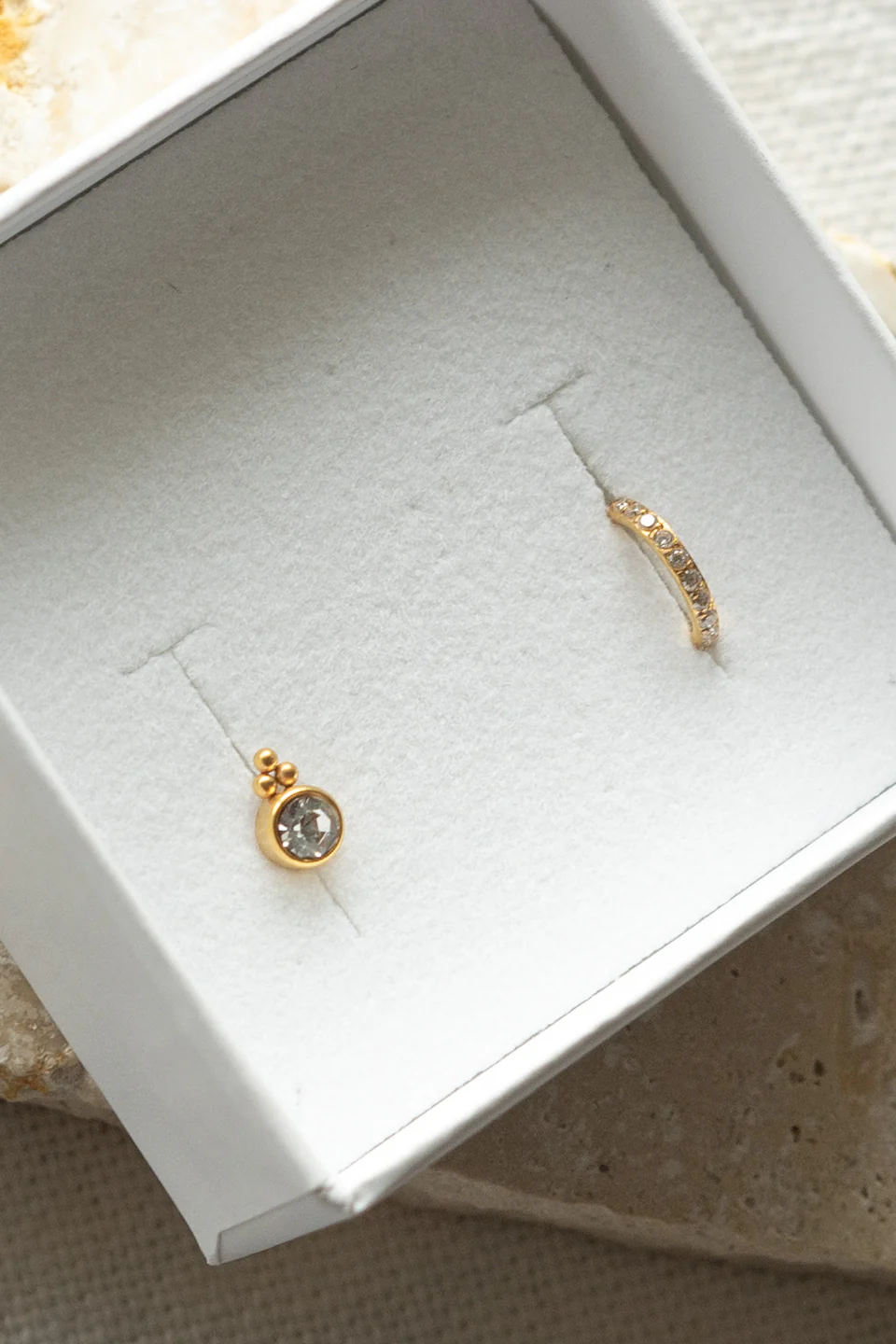 Le piercing Estrella n’est pas fabriqué dans mon atelier mais par un fournisseur sous-traitant de SIKA sélectionné pour ces prestations de qualité, L’anneau de la créole est pavée de strass blanc,