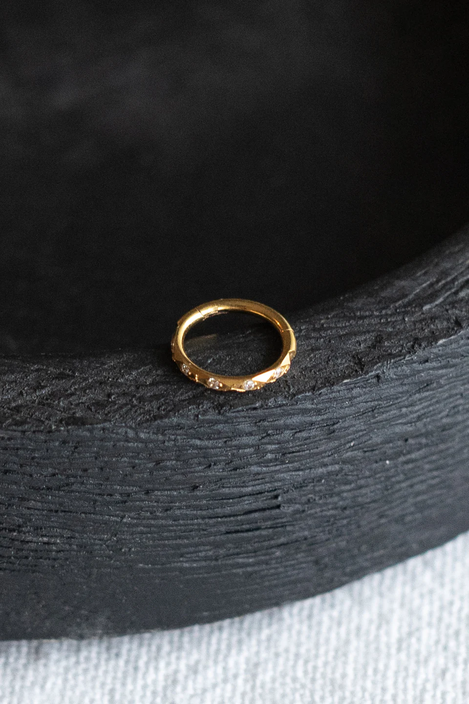 Le piercing Luz n’est pas fabriqué dans mon atelier mais par un fournisseur sous-traitant de SIKA sélectionné pour ces prestations de qualité, La créole est composé d’un anneau facetté et inrcusté de strass blancs
