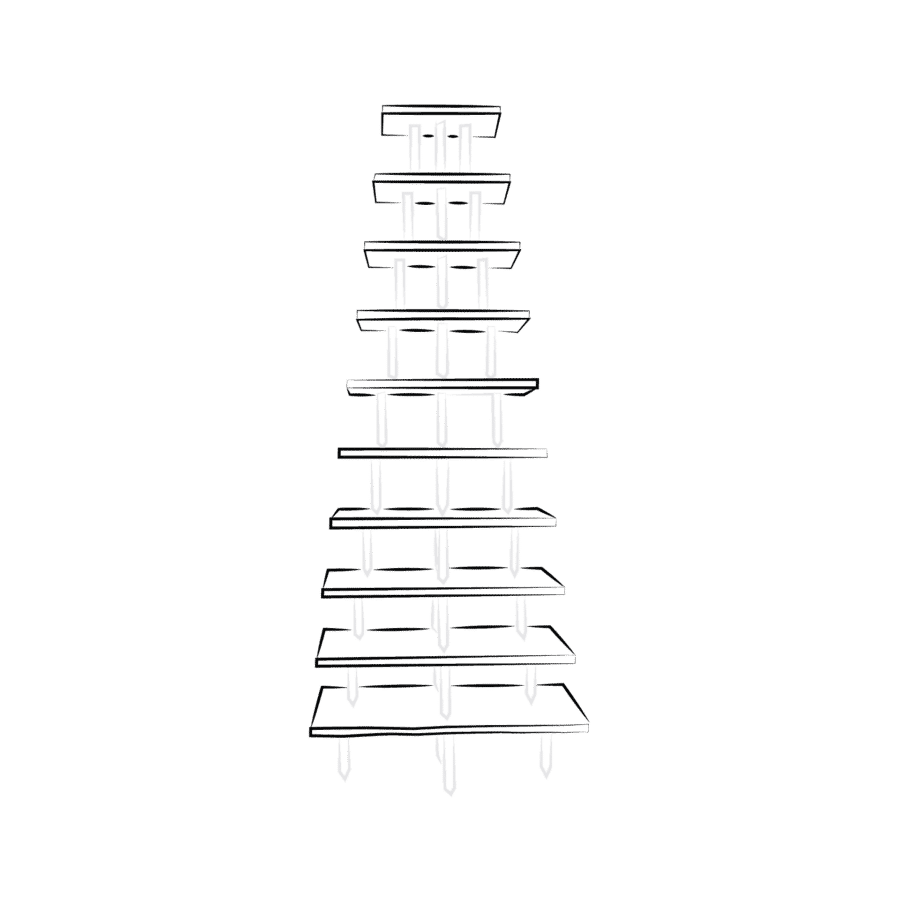 Nous vous conseillons, si vous souhaitez prendre un plateau en plexiglass, d’y associer un carré inox de Ø20mm de moins que la taille du plateau sélectionné, ainsi que de 4 tiges inox par étages.