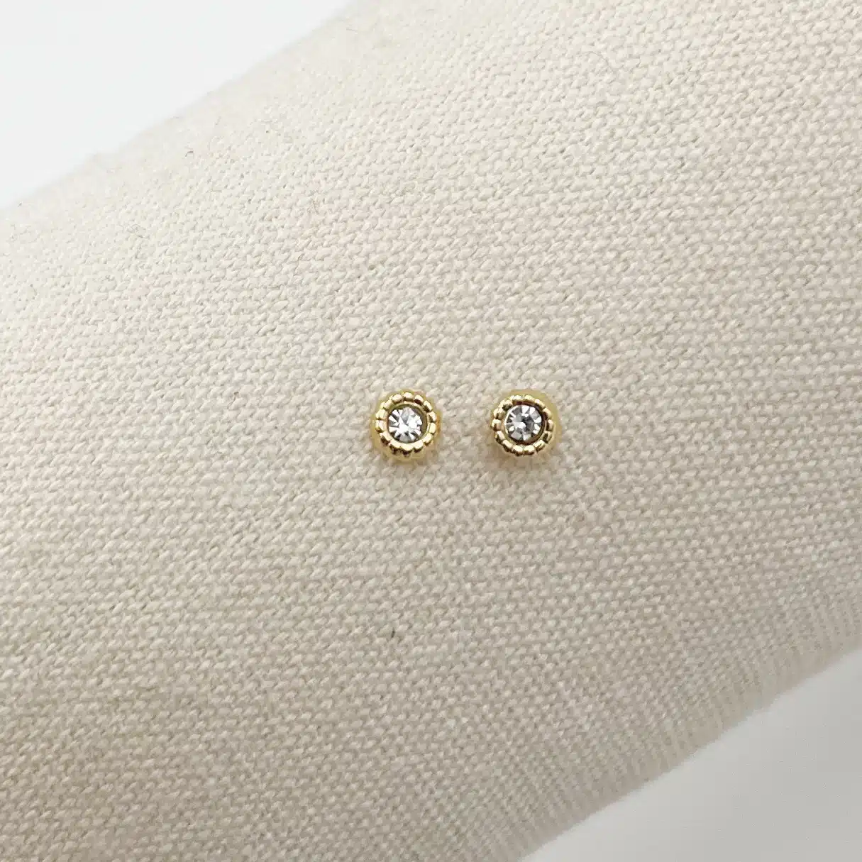 - Petites puces d’oreilles avec strass incrustés en leur centre