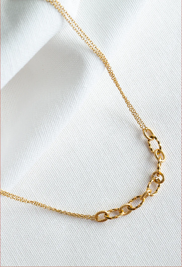 Le collier ras de cou Max est fabriqué à la main dans mon atelier, Il est composé d’une chaine aux larges maillons asymétriques entremêlée dans une chaine fine,