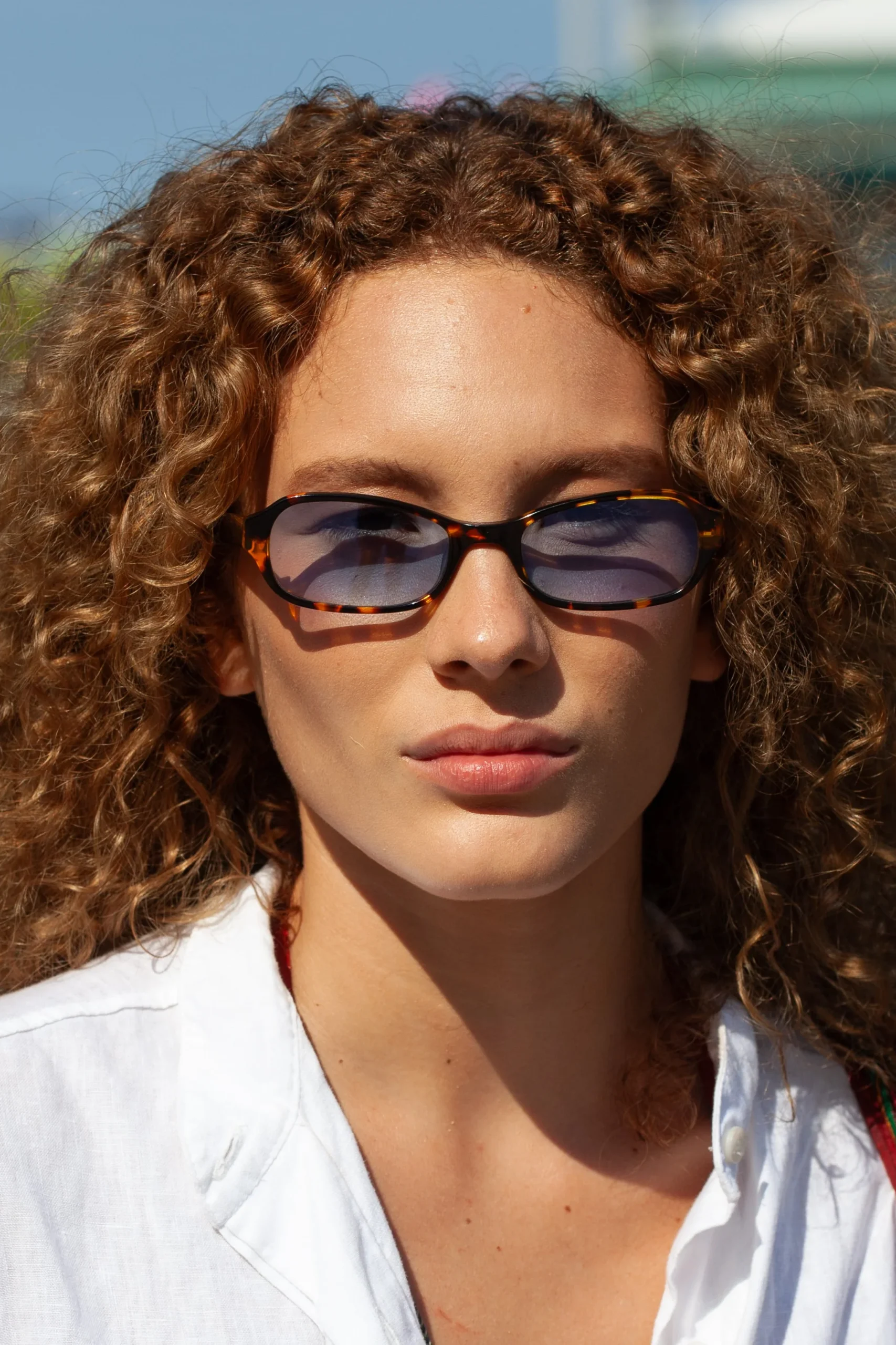 La Riley Écaille et Bleu est équipée de verres solaires dégradés de catégorie 2 (80% anti-UV)..