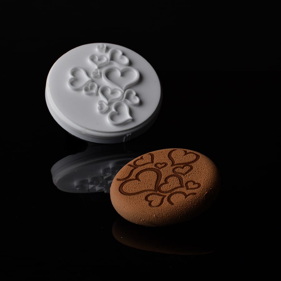 Tampon en silicone, idéalement conçut pour le marquage par transfert de poudre (glaçage, chocolat, pâte d’amande, pâte à sucre…).